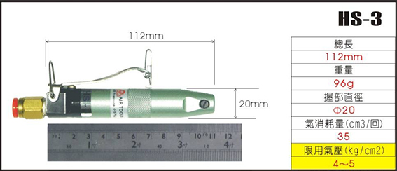 112mm | 96g | 20mm | 35 cm3/回 | 265N | 4-5kg |