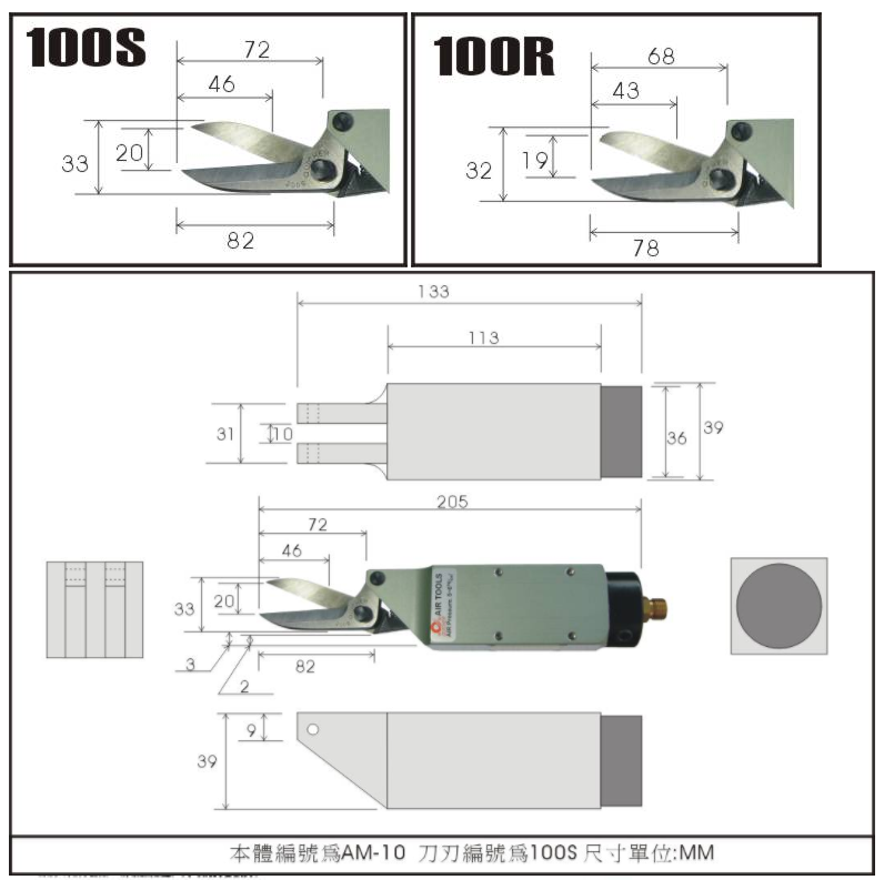 台湾快取AM-10 100S适合于切断绞线、细线、铁板、箍铁、树脂板等。有标准型与加强型两种。刀刃专利设计,除了较传统工具更省力外,对于传统工具无法剪裁之材料,如不绣钢线、钢琴线等,皆可让您轻轻松松完成工作。刀刃更换简易,现场即可操作,减少维修等待时间,进而提高工作效率。AM-10气动空气剪刀(单发式)/ 气动铁板剪(单发式)