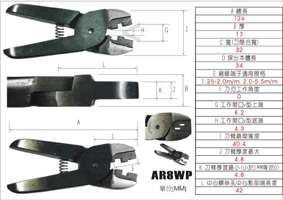 台湾快取气剪AR8WP(2.0-5.5)闭端子气动端子钳