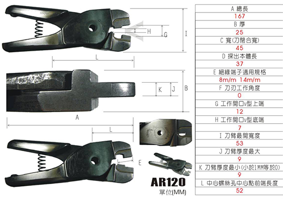 台湾快取气剪快AR120绝缘端子压接刀