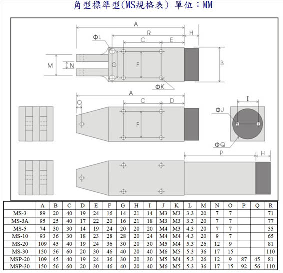 角型标准型(MS规格表) 单位:MM
